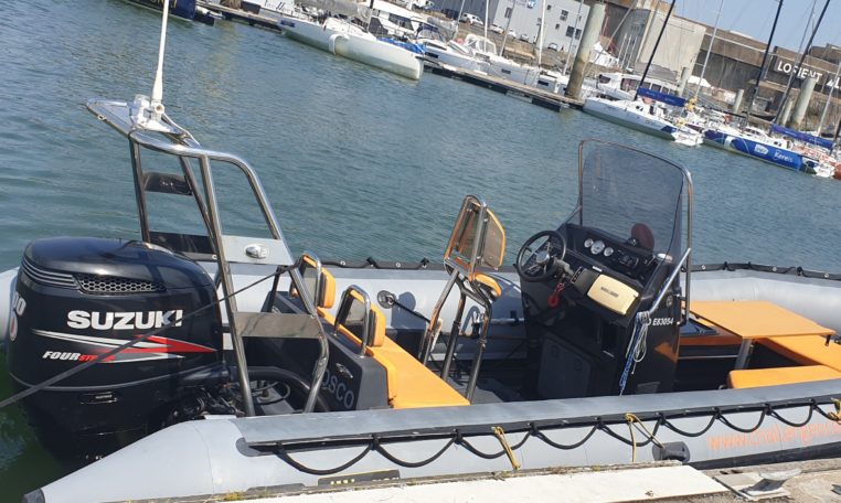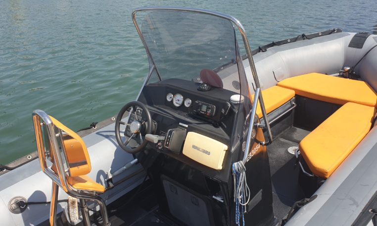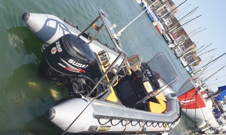 SILLINGER 680 Silverline Hypalon, très bien entretenu (factures pro fournies), moteur SUZUKI 200 CV 1200 heures évolutives, livré avec une remorque de route freinée double essieux en excellent état.